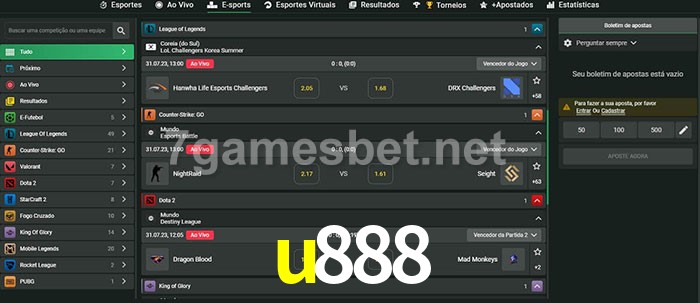 A aposta u888 oferece aos jogadores a experiência mais conveniente de apostas em eSports!